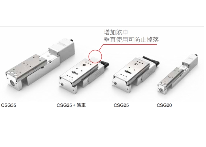 大家好,我们是TOYO的CSG家族,我是CSG35,我们是CSG25,我增加了煞车功能,垂直使用可防止掉落哦,我是CSG20,我们采用TC100驱控器,可实现位置控制、脉冲控制和通讯控制。我们有很多优点哦:1、高精度、高速度搭载精密性型螺杆